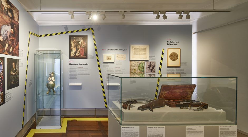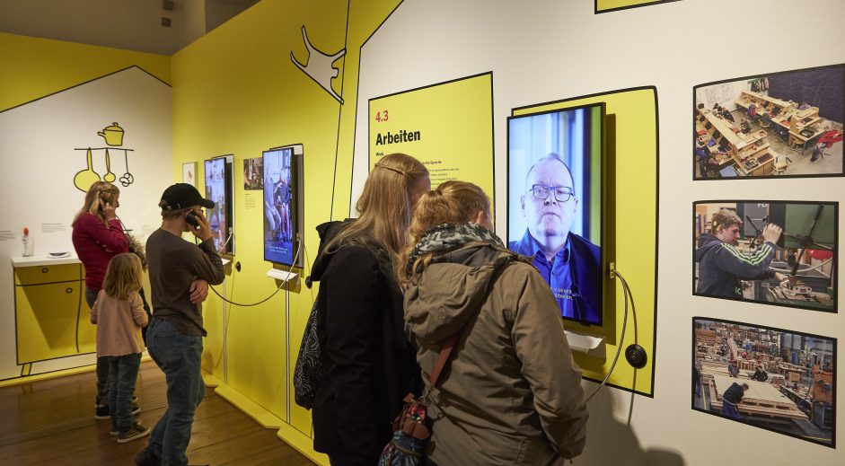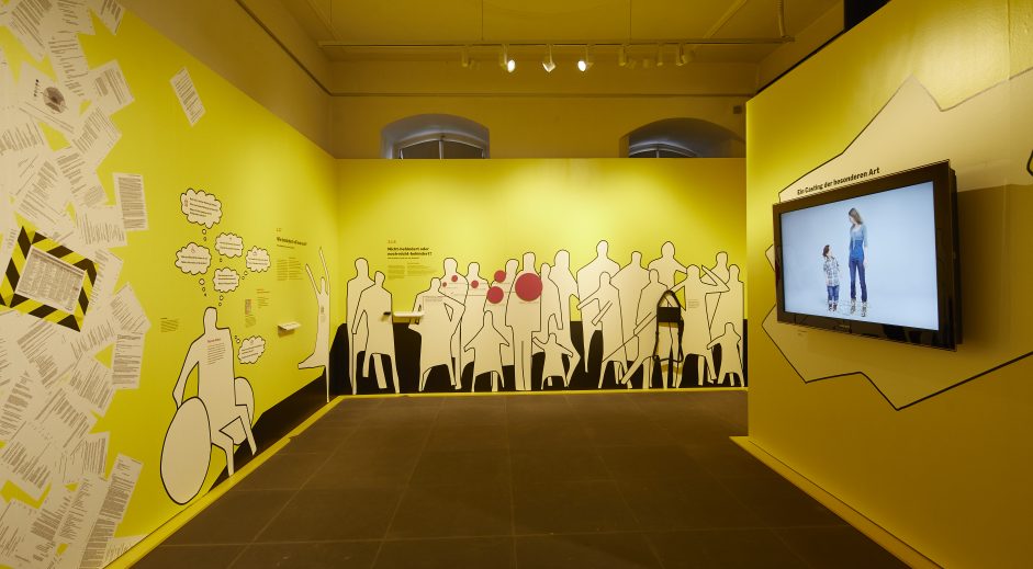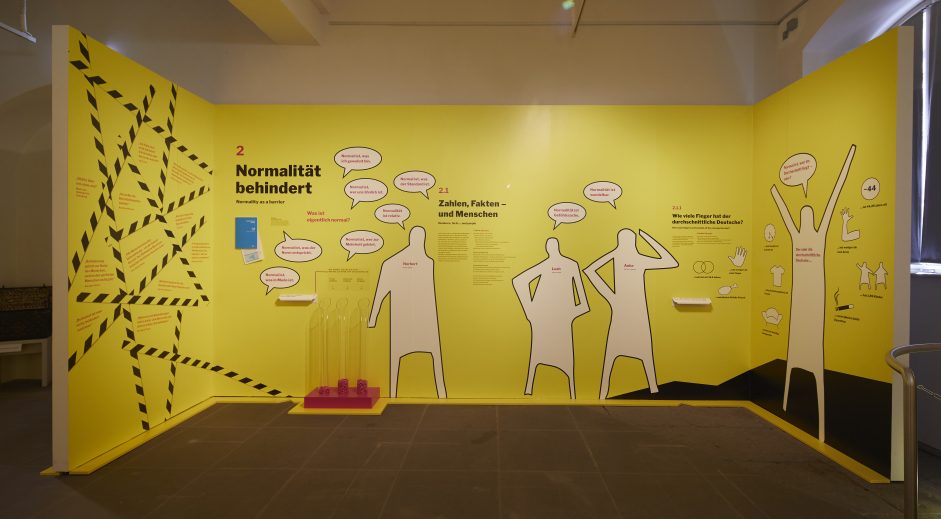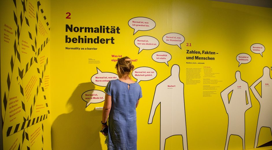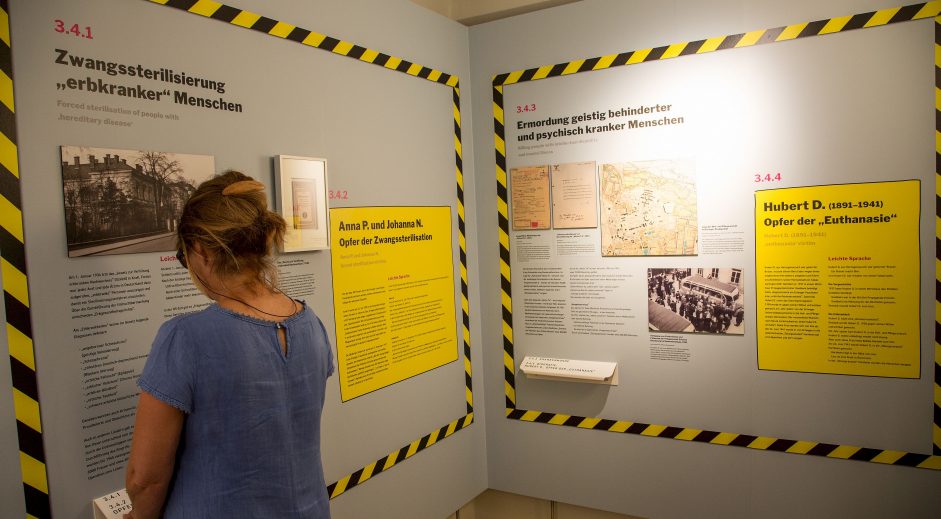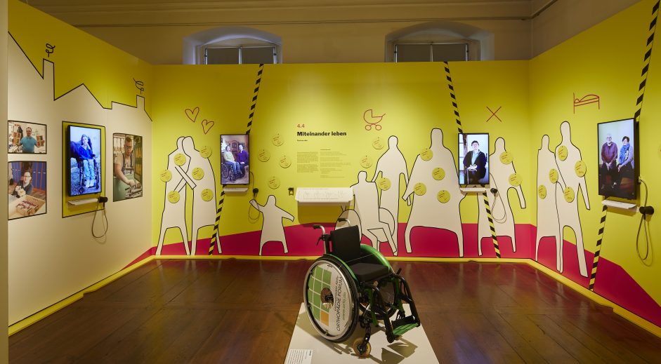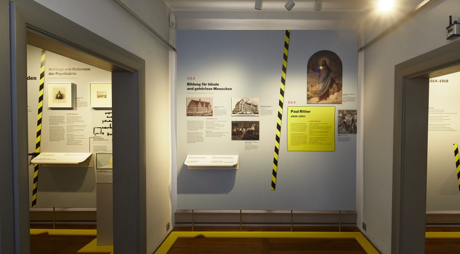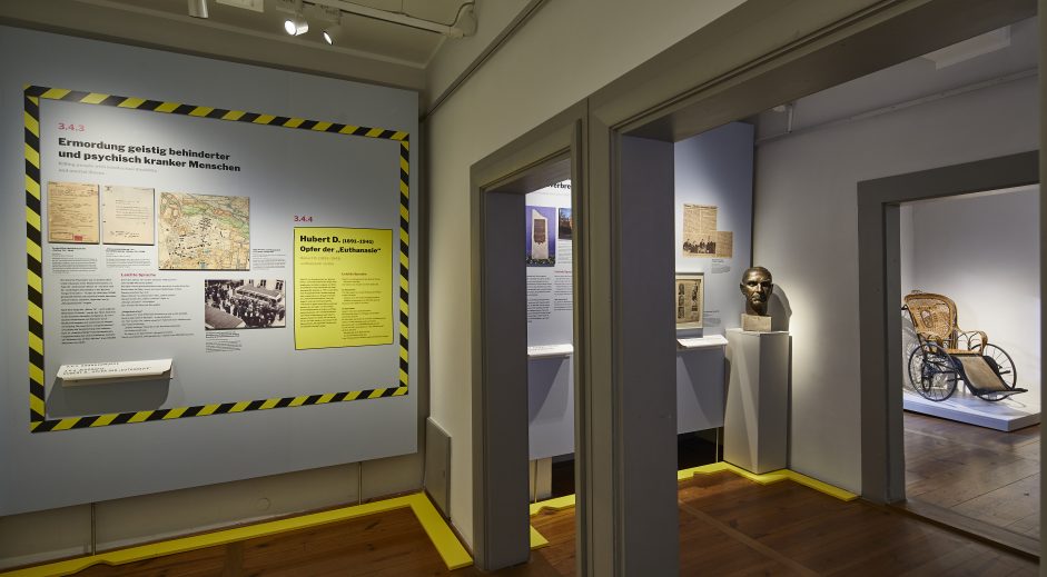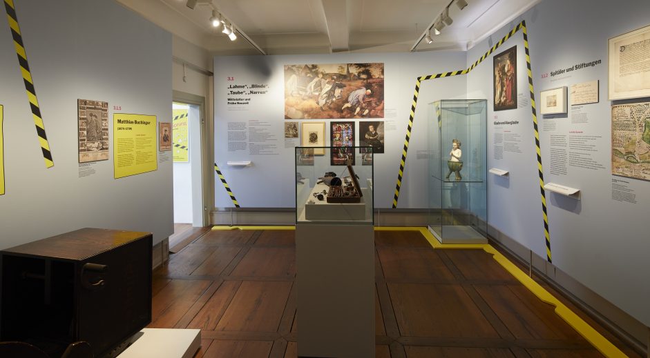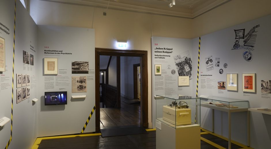 Die Ausstellung gliedert sich in einen geschichtlichen Rückblick, der in drei Abschnitten erfolgt, und einen aktuellen Teil. Das erste historische Kapitel thematisiert den Umgang mit Behinderten von der frühen Neuzeit bis zur Aufklärung und stellt die zeitgenössischen Einrichtungen und Rahmenbedingungen vor. Im zweiten Abschnitt soll der Paradigmenwechsel gezeigt werden, der sich seit der Aufklärung hin zur separierten Verwahrung in Anstalten, aber auch hin zu ersten Fördermaßnahmen für Behinderte vollzog und der bis zu modernen Therapieansätzen im frühen 20. Jahrhundert reicht. Das dritte Kapitel befasst sich mit der Vernichtungspolitik der Nationalsozialisten, die diesen Entwicklungen ein grausames Ende bereitete.
